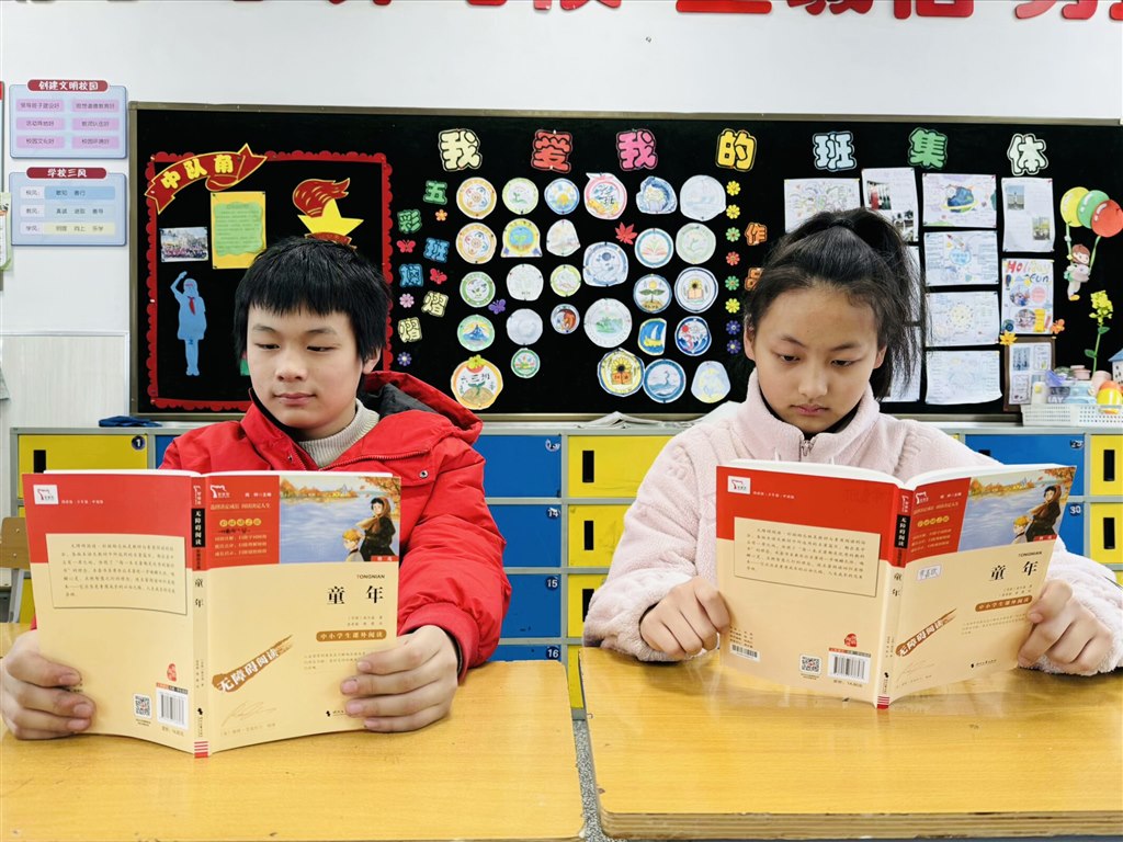读书,美美地享受静谧的时光。学校里的闲暇时光,孩子们轻轻翻开《童年》这本书,静静阅读;在家中熟悉又温暖的房间里,灯光柔和地倾洒在书页上,学生的心和文字融为一体。在一方小小的天地里,孩子们跟随作者的笔触,体验主人公充满苦难与温情的童年,与书中的角色一同欢笑,一同落泪。静静的时光里,唯有翻动书页的声音,似在与作者轻声对话,共赴一场精神的盛宴。