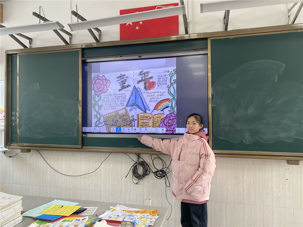 利用中午或者班队课,孩子们围坐在一起,津津有味地交流、分享。大家将书中的故事内化成自己的理解,畅谈收获。在这个过程中,大家碰撞出思维的火花,加深对作品的理解。《童年》就像一颗璀璨的星辰,照亮了孩子们对童年的认知。