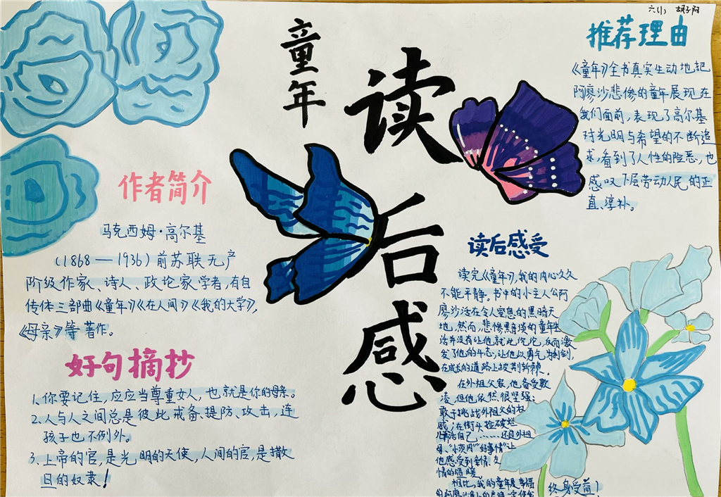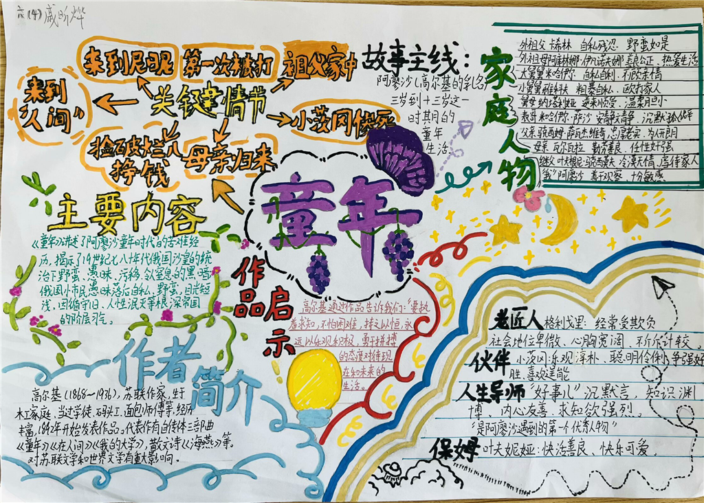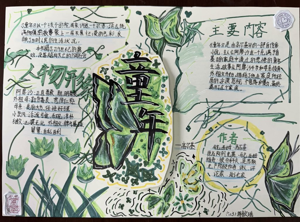 阅读是一种美好的遇见,会遇见童真的色彩,会邂逅温暖的感动。六年级的孩子们在老师的带领下,结合语文教材中第四单元的的“快乐读书吧”,以《童年》为例,开启了整本书学习活动。