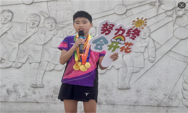 暑期创意成果分享环节,各年级代表依次登台,分享自己的坚持收获,直言“要像常州队一样不放弃”。真实的故事里,满是兰小娃对体育的热爱与对坚持的践行。校乒乓队优秀学生代表董鑫垲在暑期获得常州市中小学乒乓球赛团体、单打冠军,为校争光,他分享了自己每日训练计划,鼓励同学以敢拼不弃的坚持,在学习与爱好中逐梦。