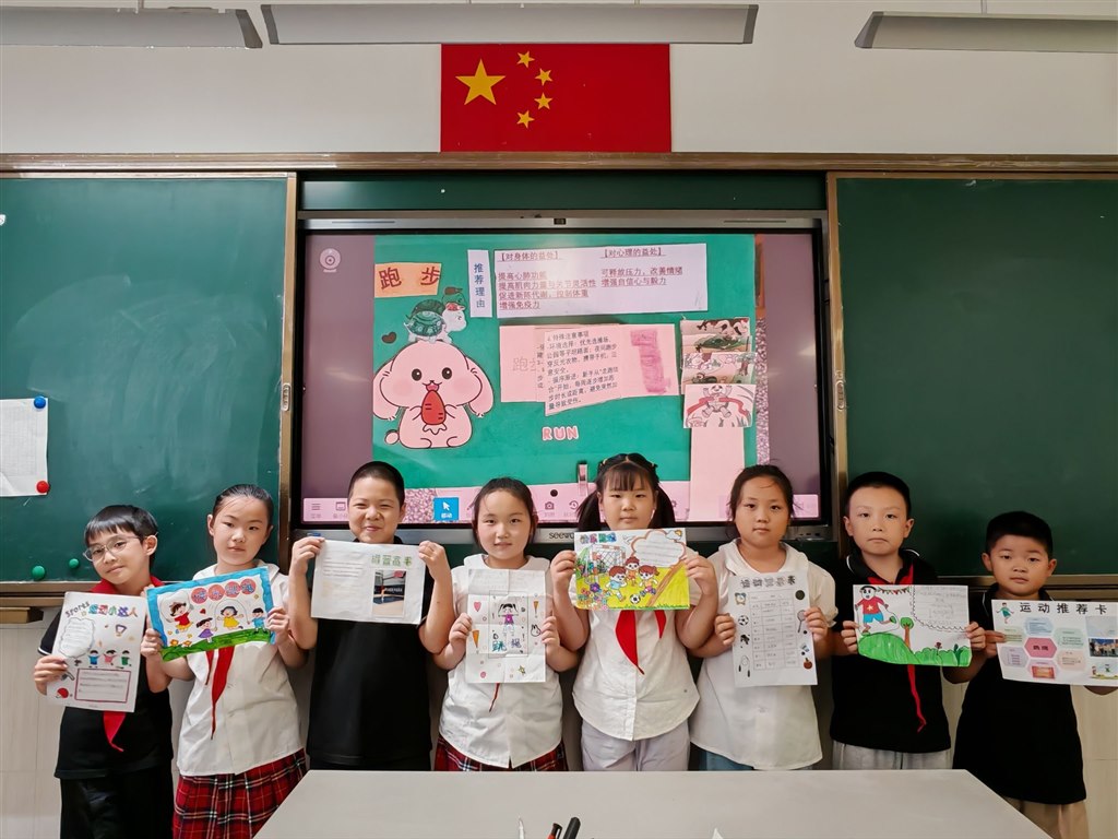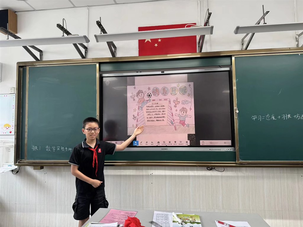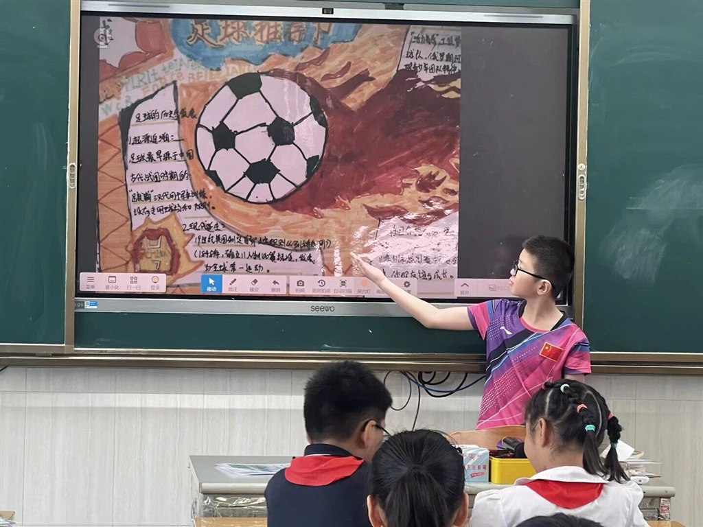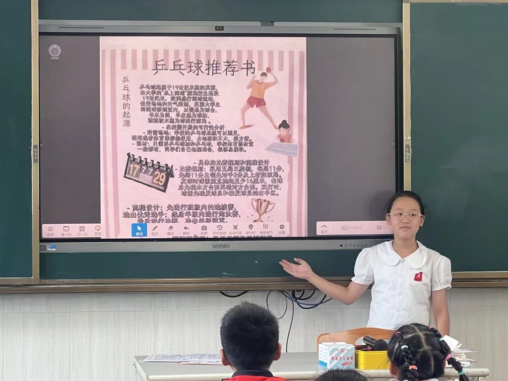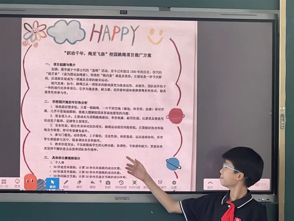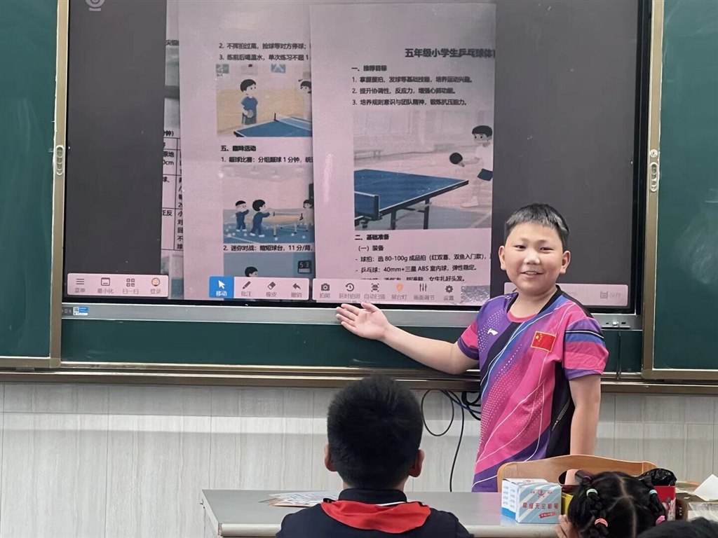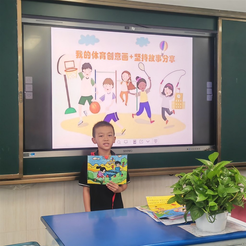 一年级以“我与兰小Yue相遇+坚持启蒙”为主题,孩子们参观校园并打卡“国球荣誉室”,聆听常州队进球故事;通过“我的第一次坚持”小调查分享成长小事,许下“我要坚持自己整理书包”等心愿。二年级围绕“我的体育创意画+坚持故事”展开,学生分享暑期画作背后的坚持经历,分组讨论运动失败应对方法并画出“坚持小妙招”,还在作品旁添加星星、加油手势等“坚持符号”。三四年级聚焦“创意推荐卡+坚持方案”,师生观看常州队进球视频后,探讨如何让体育项目更“耐玩”,随后展示自制运动推荐卡,在“坚持小贴士”板块写下“接不到球别放弃,多练几次就好”等暖心提示。五六年级以“体育提案+班级坚持计划”为核心,分组分析足球提案并结合常州队“99天准备”精神,设计“班级运动坚持公约”(如“每周练习3次,风雨无阻”),还撰写“我的学期坚持承诺”,立下参与体育月赛不放弃的誓言。