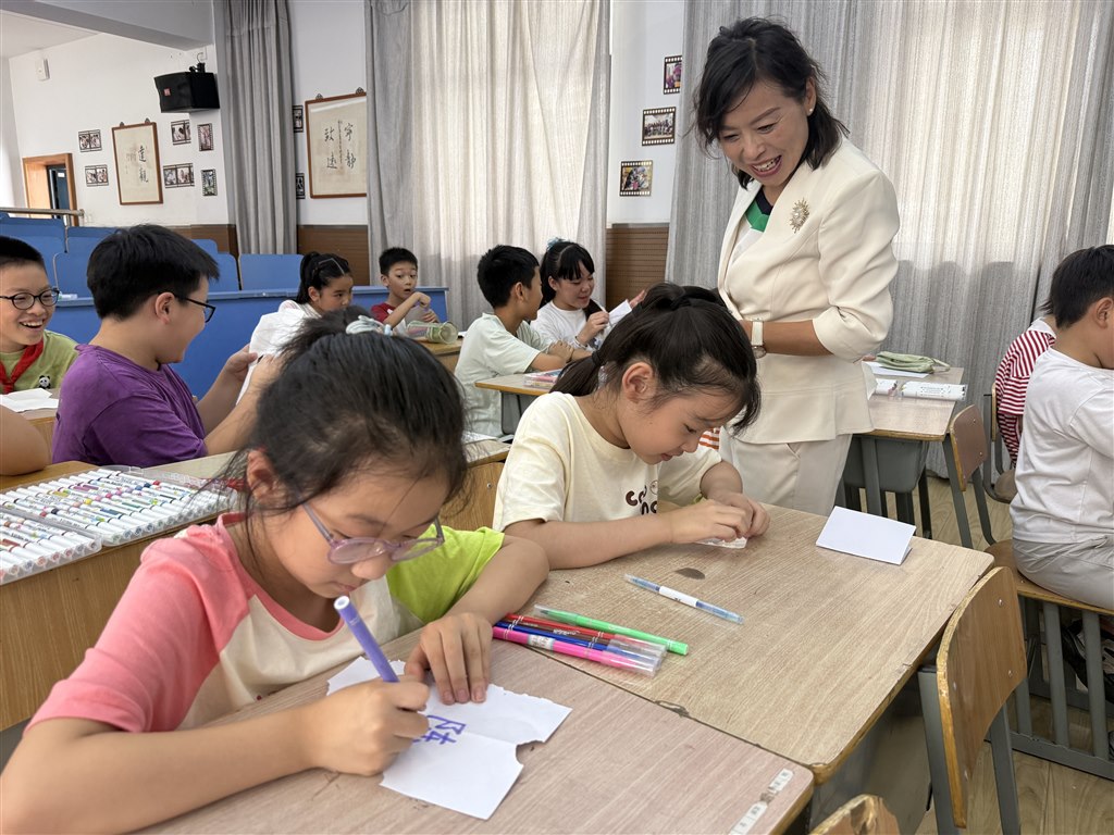 活动中,关工委全程统筹、细化各环节:开场以“手指操”暖场,工作人员带领学生跟着节奏舒展手指,快速活跃现场氛围;随后推进“名字接龙彩绘”破冰,引导学生分组写下姓名并绘制专属图案,轮流介绍时需重复前一人“名字+图案”,“我是画小太阳的乐乐!”“我接乐乐,是画星星的朵朵!”互动间陌生感消散,快速建立同伴信任。