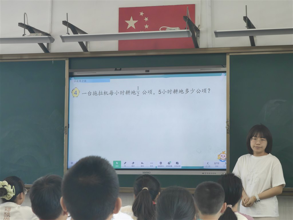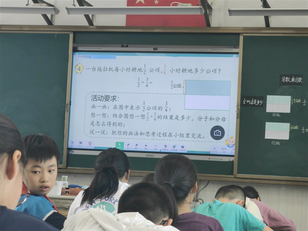 今日,我校六(4)班在数学教师武丽平的引领下,开展了一堂生动而深刻的《分数乘分数》数学探究课。课堂摒弃了传统的单向灌输,转而以学生为主体,在动手操作与思维碰撞中,自主构建数学新知。