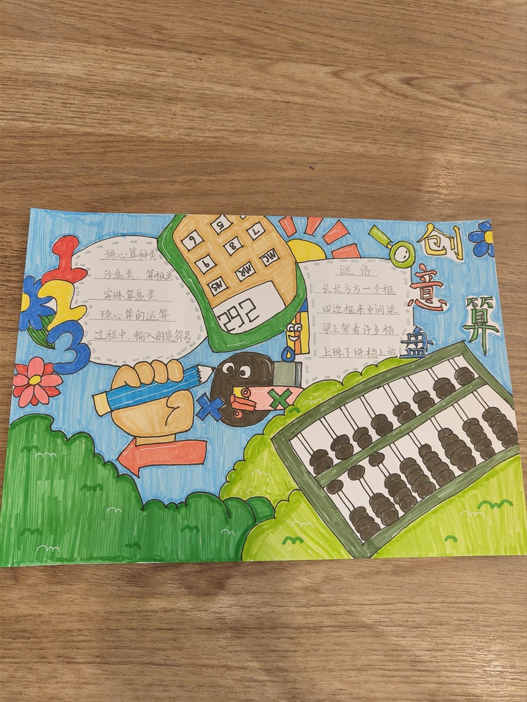 近日,我校二年级开展了一场别开生面的跨学科主题实践活动——“巧手绘算盘·创意珠算”。