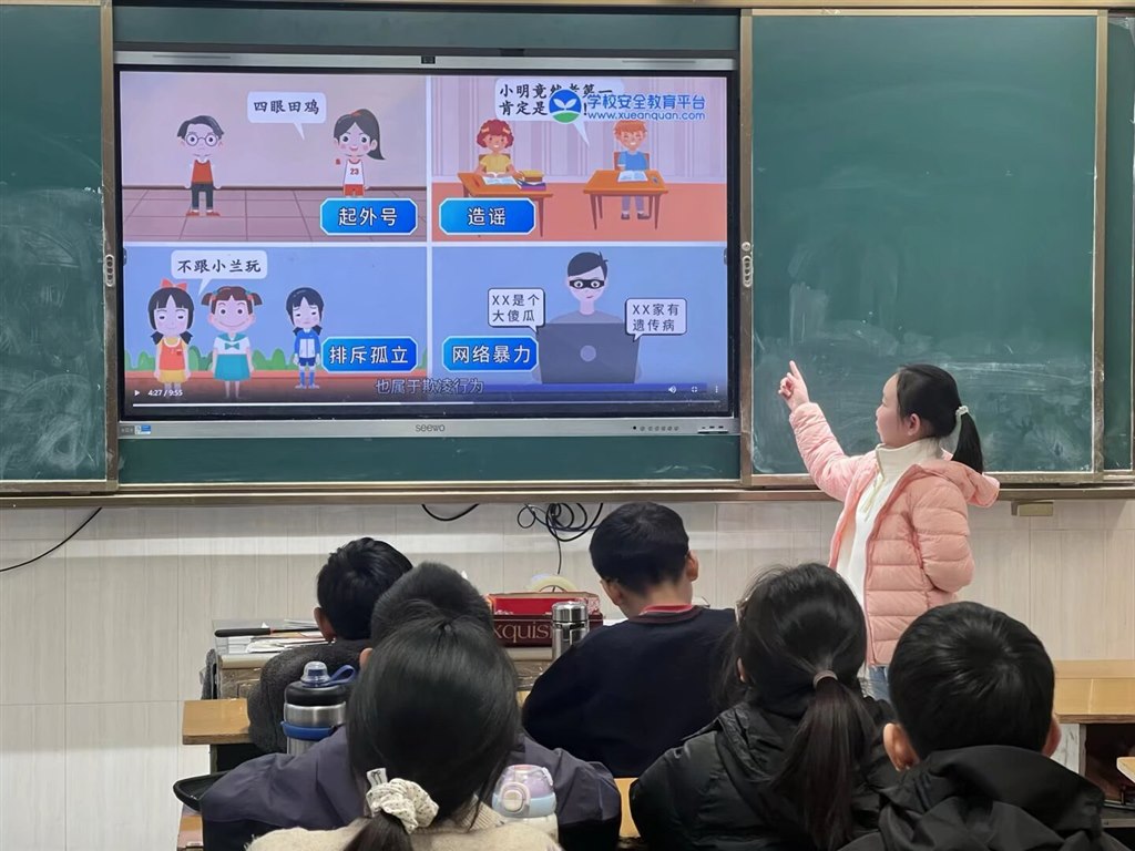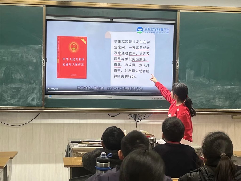 活动中,各班级围绕 “认清欺凌、学会自护、友善相处” 三大核心展开:暖场环节里,教师通过 “不舒服的相处” 互动分享,引导学生结合生活场景辨别肢体、语言、社交等不同类型的欺凌行为;情景剧场板块,学生们以 “被抢文具”“遭遇嘲笑” 等模拟场景,现场演练 “大声拒绝、及时求助、不做旁观者” 的应对方法,互动中厘清了 “欺凌行为的边界”;收尾阶段的 “防欺凌承诺纸” 签名环节,学生们依次写下名字,用行动践行 “不做欺凌者、不做旁观者” 的约定,课堂里的举手分享、情景表演、集体签名等画面,成为校园里温暖的 “友善注脚”。