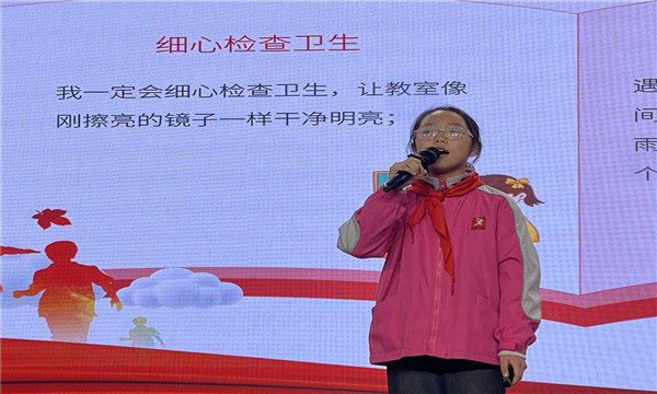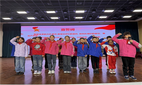 当选队员随后进行集体宣誓,誓词简洁有力:“接受伙伴委托,担负队组织重任,努力学习、以身作则、团结同学,用热情服务回报信任,做合格大队委员。”铮铮誓言彰显了他们为集体服务的坚定决心。