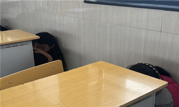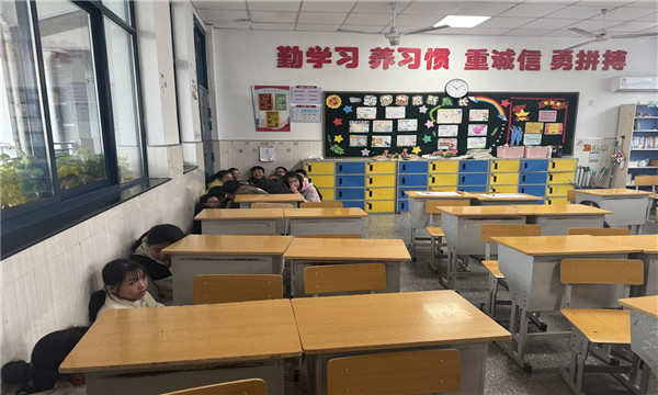 随着校园广播中模拟预警信号的响起,演练正式拉开帷幕。各班级教师迅速反应,立即组织正在课间活动的学生按照预定疏散路线,有序、快速地返回教室。教室内,班主任指导学生紧闭门窗,利用课桌椅等物体加固防线,引导学生在安全区域进行隐蔽式躲避,保持安静,整个过程紧张而有序。