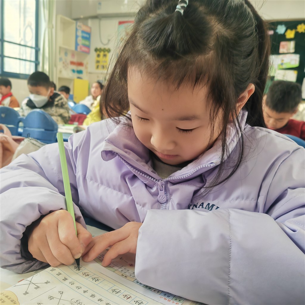 二1班蒋老师执教了《语文园地六》,整堂课紧扣识字与运用两大重点,教学设计趣味盎然。在“识字加油站”环节,蒋老师以“锋、峰、蜂”“炒、吵、抄”“幕、墓、慕”三组形近字为抓手,引导学生对比字形差异,结合具体语境辨析字义,掌握用字技巧。“字词句运用”板块中,她组织学生开展加偏旁组新字活动,围绕“巴、包、方、青、马”展开创意比拼,让学生在游戏中感受汉字构字的奇妙。“日积月累”环节,蒋老师带领学生诵读立志名言,浸润文化底蕴。生字书写环节,蒋老师聚焦“抄”“炒”二字,从笔画顺序到间架结构细致指导,助力学生练就规范书写。