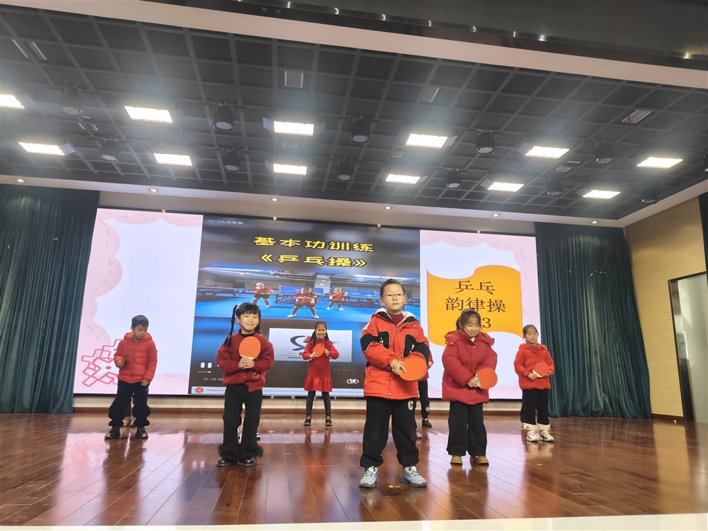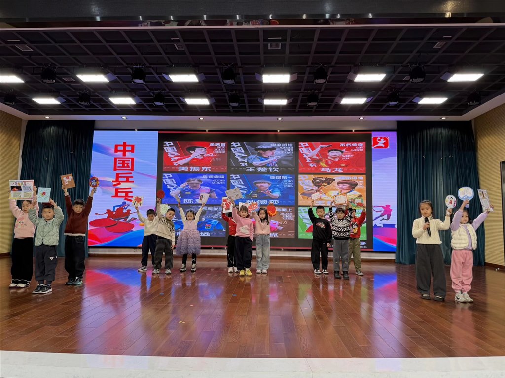 12月31日上午,一年级乒乓嘉年华庆典活动精彩上演。一(1)班的乒乓手指操活力开场,瞬间点燃现场氛围;一(2)班带来的情景剧《奇妙的乒乓探险之旅》,情节生动有趣,赢得阵阵掌声;一(3)班的乒乓韵律操动感十足,将现场气氛推向高潮。一(4)班同学们不仅展示了精心创作的乒乓主题作品,还声情并茂地介绍乒乓运动员的故事,更与现场小伙伴开展趣味互动游戏,欢声笑语充满校园。激昂的校歌奏响,唱出全体师生对乒乓文化的热爱,彰显深厚的校园乒乓底蕴。活动最后,学校为优秀作品创作者颁发“创造之星”奖状,鼓励孩子们以乒乓为伴,快乐成长。