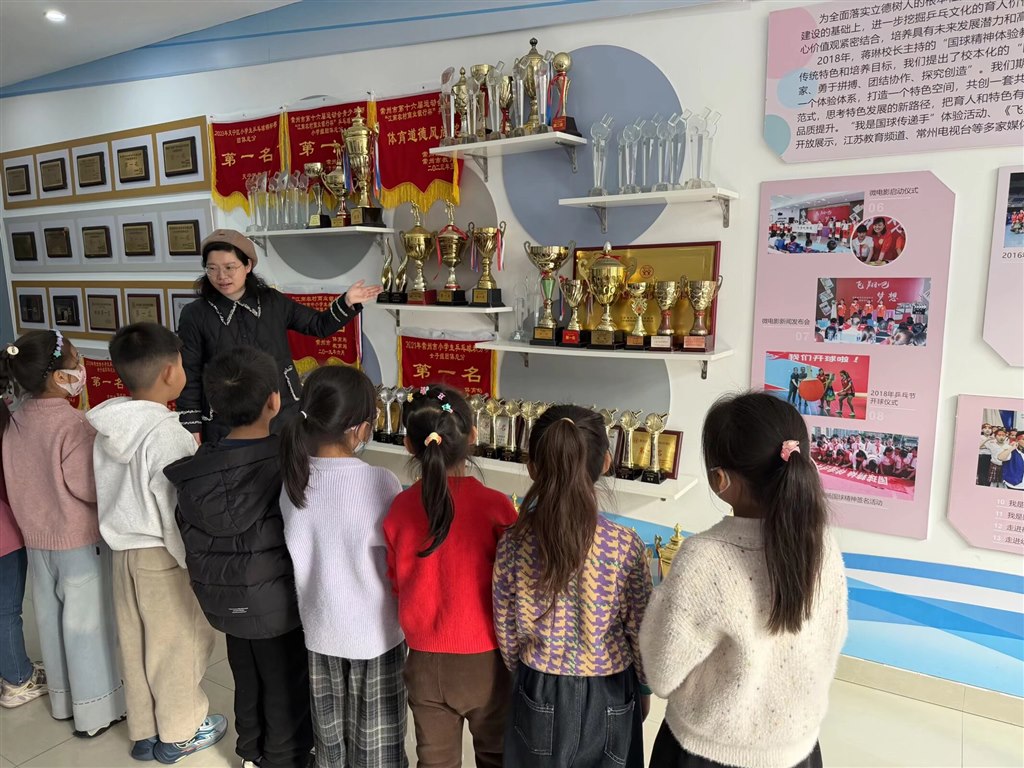 活动以“乒乓”为核心,串联起多学科融合的趣味课堂。语文课上,孩子们循着文字足迹,探寻乒乓发展简史,认识闪耀的乒乓明星;数学课上,乒乓馆变身数字乐园,同学们化身小小探索家,寻找藏在角落的“数字小精灵”;美术课上,一块块乒乓板成为创意画布,孩子们用画笔勾勒出心中的乒乓校园;音乐课上,《银球飞舞花盛开》的童谣旋律轻快悠扬,唱响童真童趣;科学课上,大家模仿伽利略滚小球实验,在乒乓球滚动的轨迹中感受科学奥秘;体育课上,颠球练习有条不紊,孩子们专注的模样尽显运动热情。
