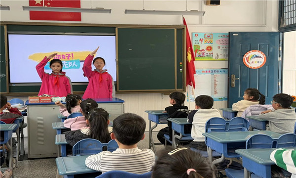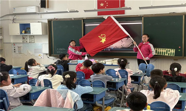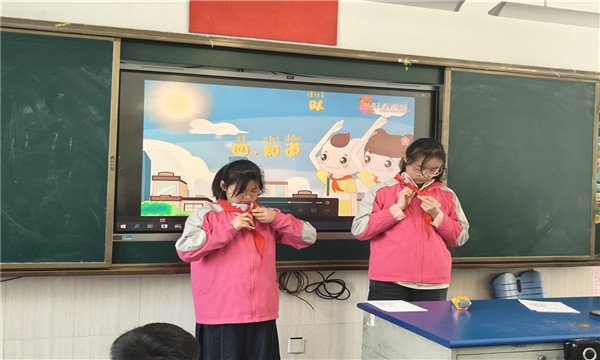 活动中,小辅导员们逐一讲解少先队核心知识,带领同学们清晰认识中国少年先锋队队名,了解少先队队旗——大队旗为五角星加火炬的红旗,中队旗是大队旗一侧裁去一角,明确红旗象征革命胜利,五角星代表中国共产党的领导,火炬象征光明;全面认识队标志,知晓红领巾是少先队员的标志,它代表红旗的一角,是革命先烈的鲜血染成。